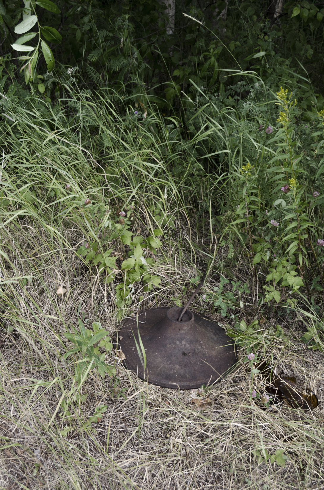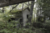 A little further along, on the north side of the track, we encountered the remains of a water tower. Not yet knowing the history of this place, I came to the conclusion that coal and water were the most likely reason for this town's existence. As we continued along, we began to notice other details. A ramp to raise a car for repairs. An old car. Open foundations with old furnaces cold and covered in moss.