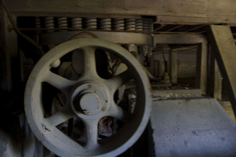 I don't recall where I first heard about this location, but when we arrived, I was quite surprised by how much there was left to see. We wandered about, looking at all of the machinery, traying in vain to determine what each was for. I worked up the nerve to slowly work my way up the conveyor belt to the small structure at the top of the silos. I was rewarded with a wonderful view of the property, and a stomach-churning look down into the silo.