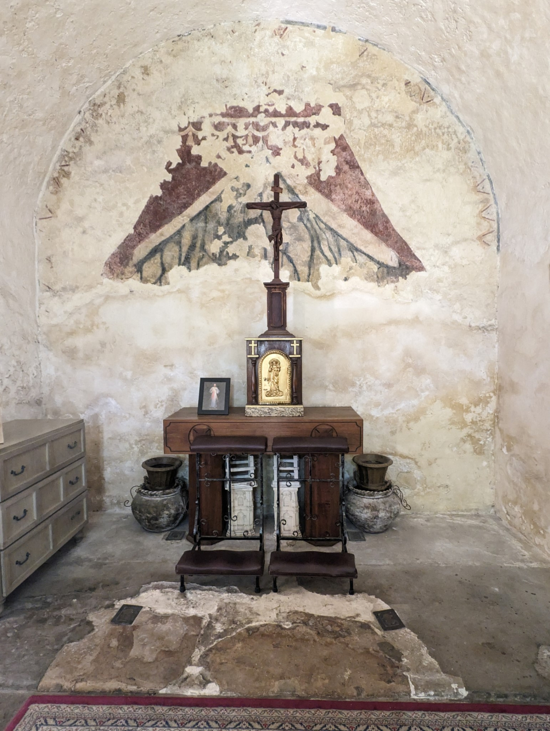 Mission Concepci贸n is also notable for its well-preserved frescoes. These colorful designs, which covered both the exterior and interior of the church and convento, were applied over 250 years ago. While many of the frescoes have deteriorated over time, several rooms still show remnants of these intricate artworks.