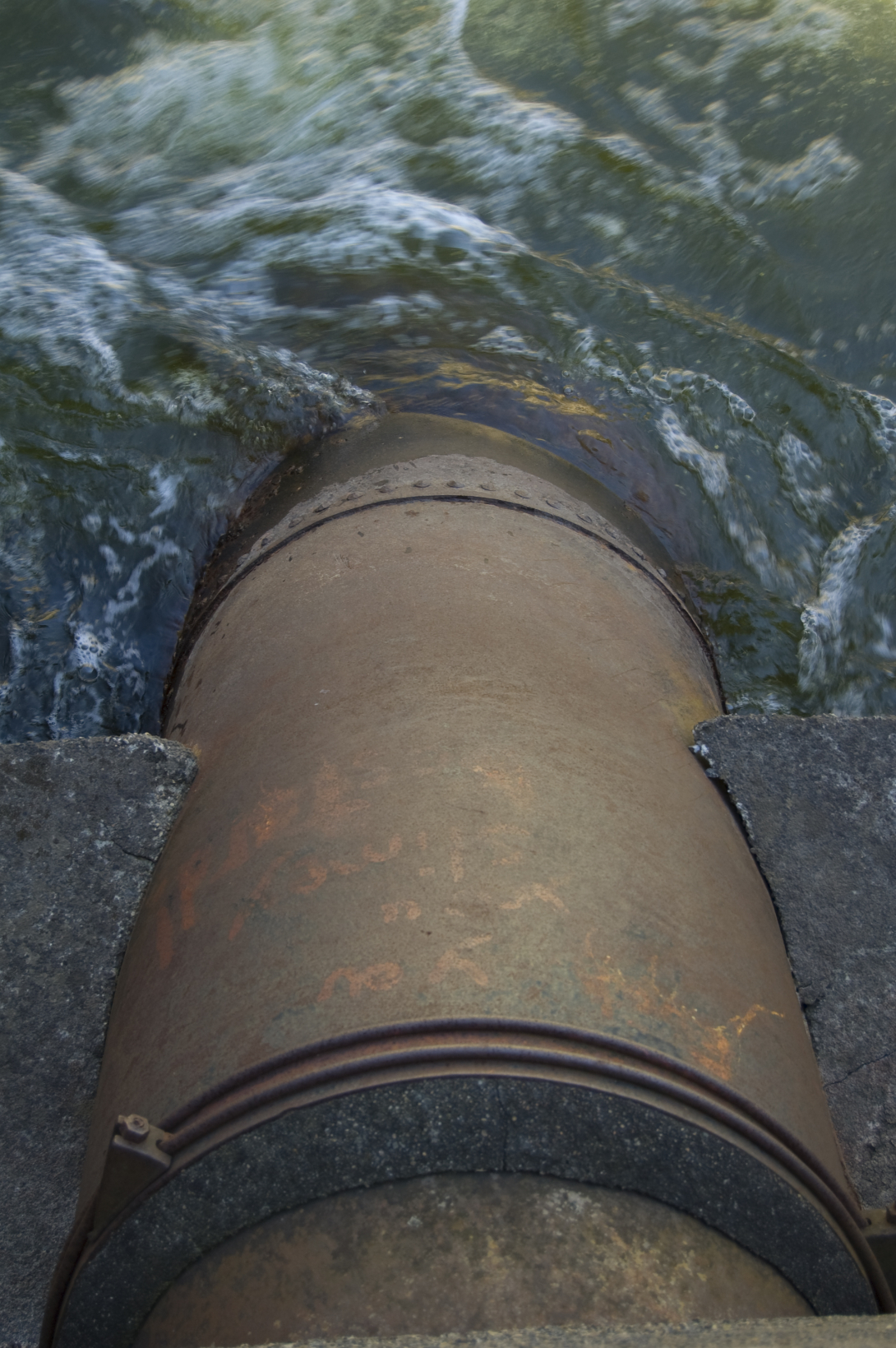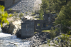 I then circled back onto the highway, and found a small driveway just past the bridge. I entered the property on foot, and climbed over the rocks down to the remains of the building. The water was moving surprisingly quickly, and I could make out the shadows of fish apparently sheltering inside the old pipes.