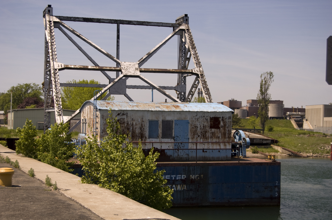The canal also featured an Emergency Swing Dam. This bridge-like structure could, in case of damage to the lock, swing across and deploy a dam of iron plates to cut off uncontrolled flow of water from Superior into Huron. This system was put to the test on June 9, 1909 when the Perry G. Walker, owned by Gilchrist Transportation Co. of Cleveland, Ohio, rammed into the south main gate. The force of the water released by the damaged gate toppled the north gate, throwing the Walker back out, and swept two other ships downstream. One of those two again struck the south gate and ripped it diagonally in two.