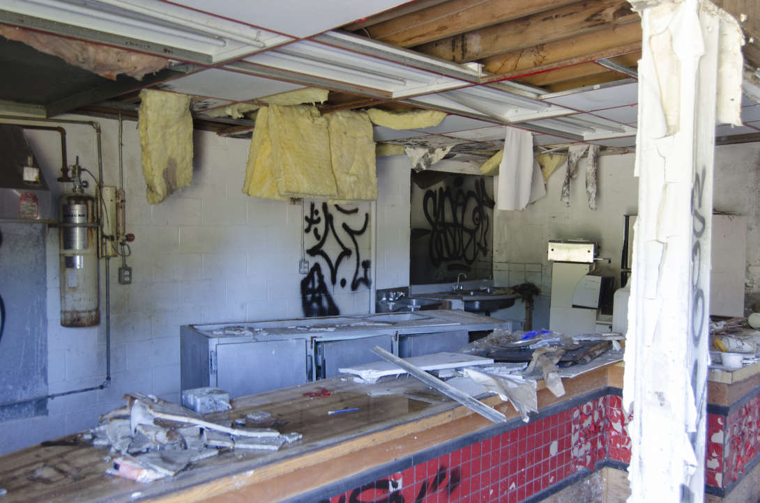 I was surprised at how much of it was still present, and at the same time dismayed by how badly destroyed it was already. Any hope of anyone re-opening this establishment for nostalgia's sake is pretty much gone.