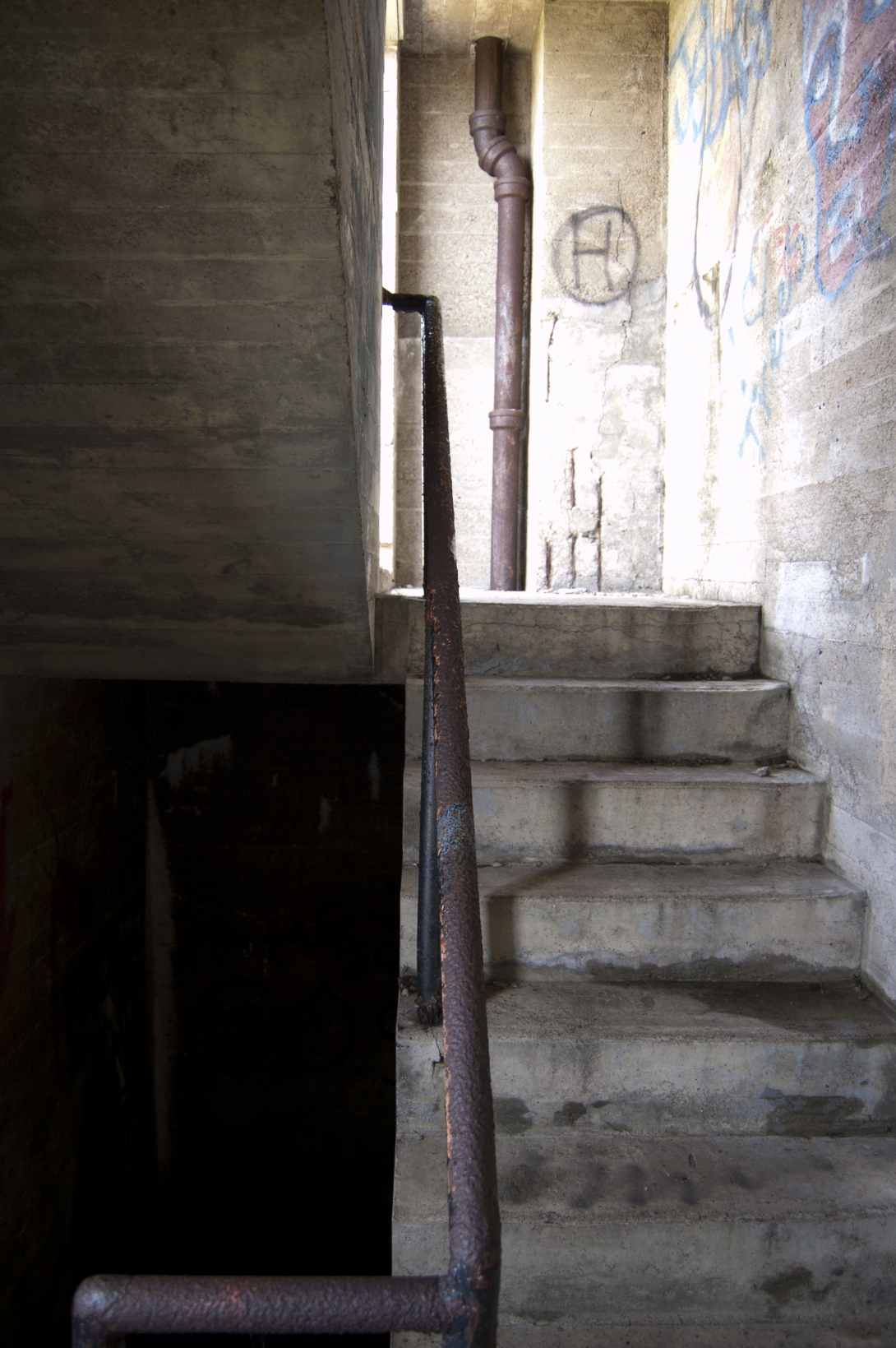 Once there, a path, a white rope, and a sign painted on a rock guided us to the top of the steep incline to this historical treasure trove that just kept revealing more and more as we looked around. There's something for everyone here. If you like views, the panorama is beautiful. If you like tunnels and underground rooms, it has that too. If you like old stone foundations, you won't be disappointed.