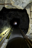 The interior of the building, as you'll see from the pictures, doesn't hold a lot of equipment. One thing I did notice, and enjoyed seeing for myself for the first time, was the "elevator" for the employees to ride to the top. A simple vertical conveyor belt with handles and steps that the workers simply stood on to hitch a ride upward. I can't imagine it passing today's safety regulations.