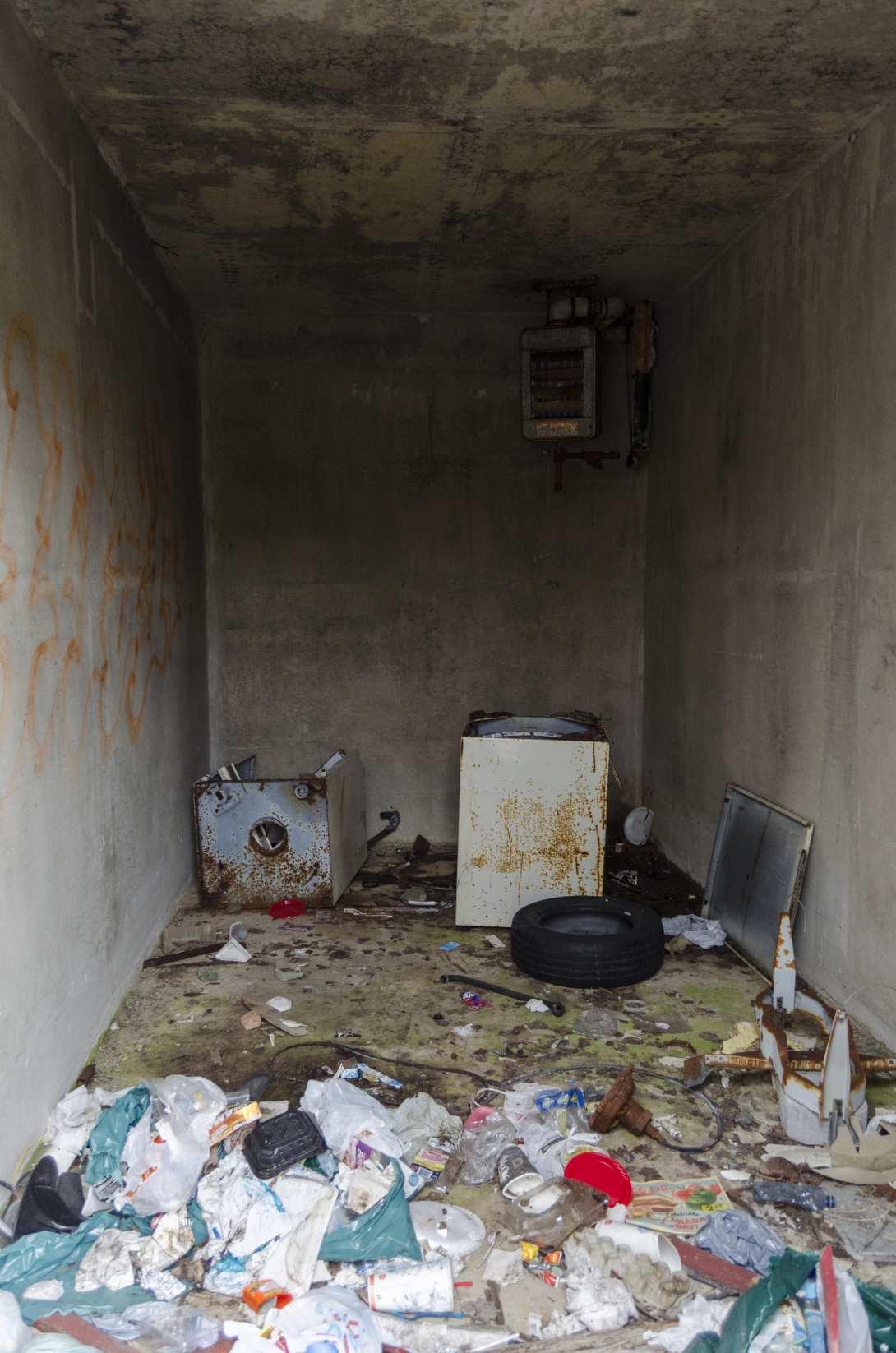 It was a long concrete building with multiple bays for the storage of ordnance. You could still make out the painted stencils on the wall indicating what should be stored within. Each bay had a heater, and one room in the centre of the building featured the remains of a furnace and the other mechanics of maintaining the building.