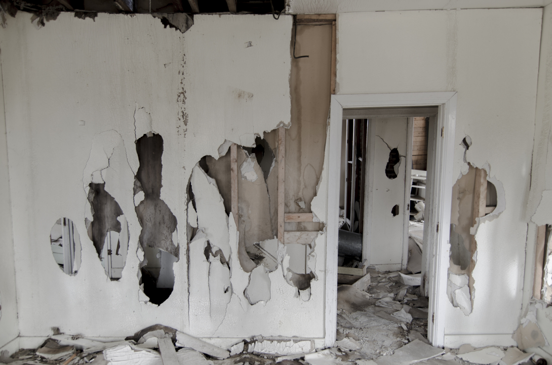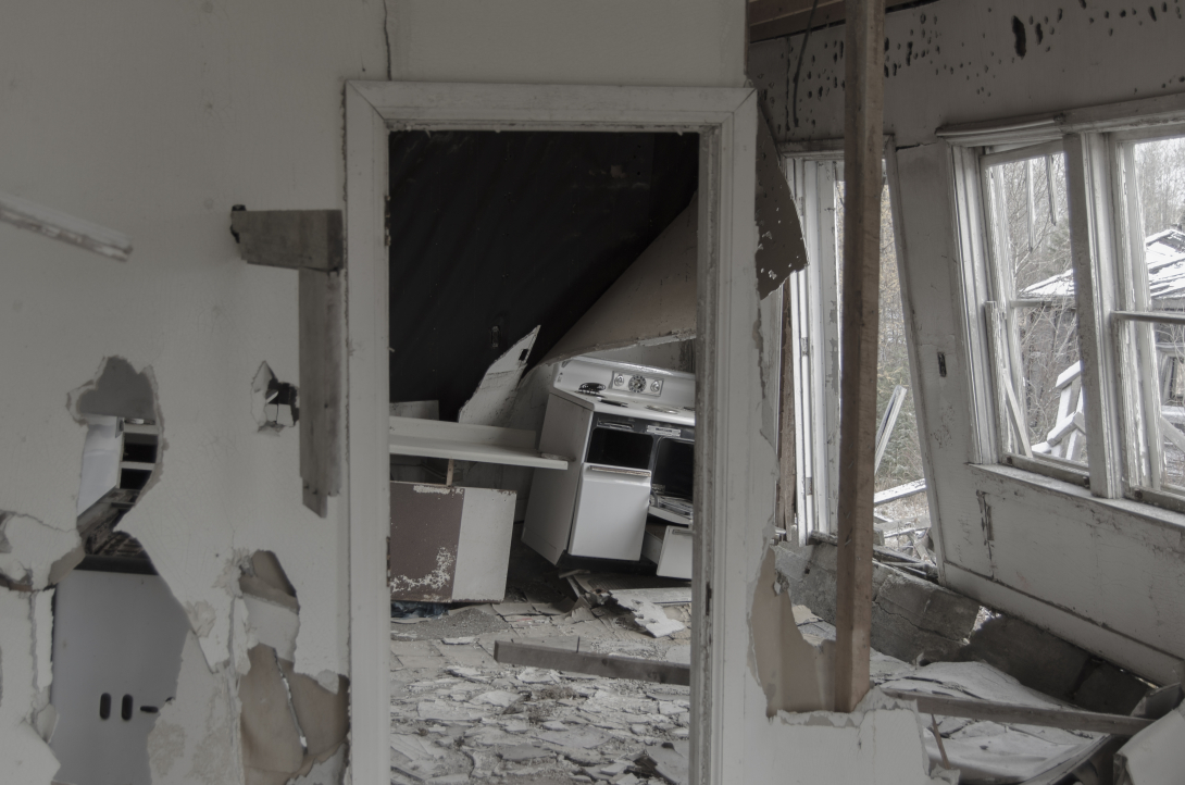 It's not in the greatest of conditions. The walls are separating from each other and the foundation. The floor was by no means level or solid and certainly I was not going to trust it to hold me that well. I risked the stairs, but only briefly as I checked out the bedrooms from a distance. I didn't like the look of any of the ceiling, let alone the floor above.