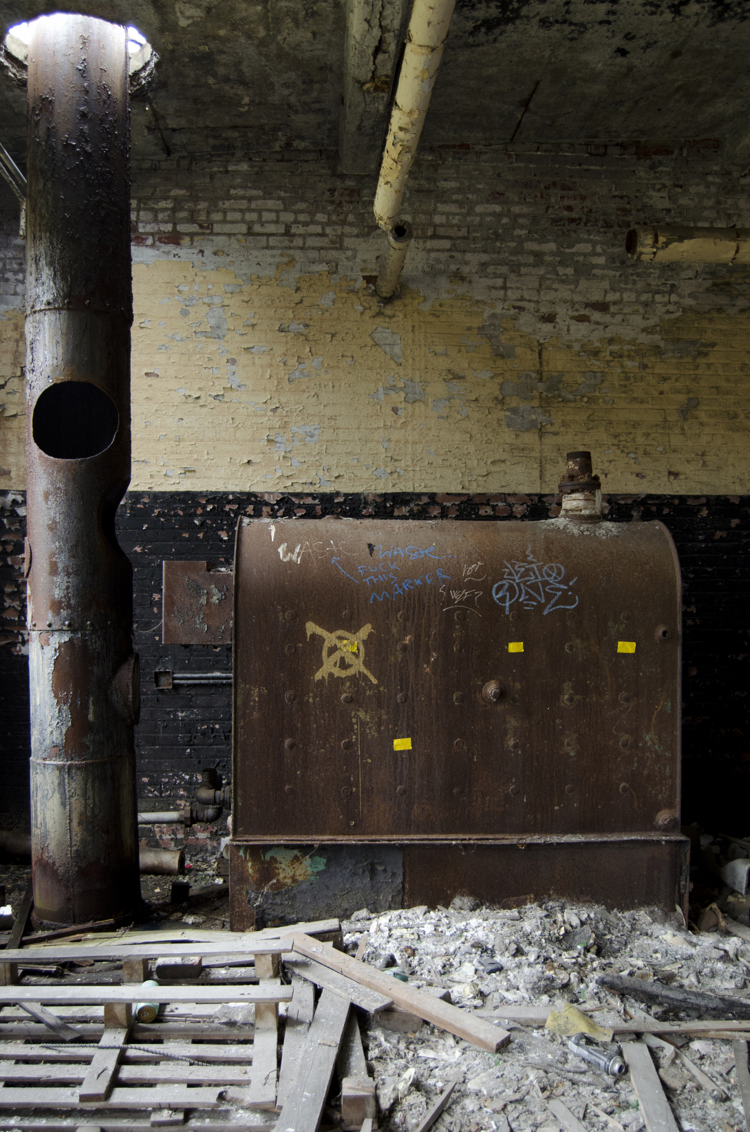 My research suggests these buildings may not be around much longer, but the red tape involved with any significant demolition keeps them safe for the time being.
