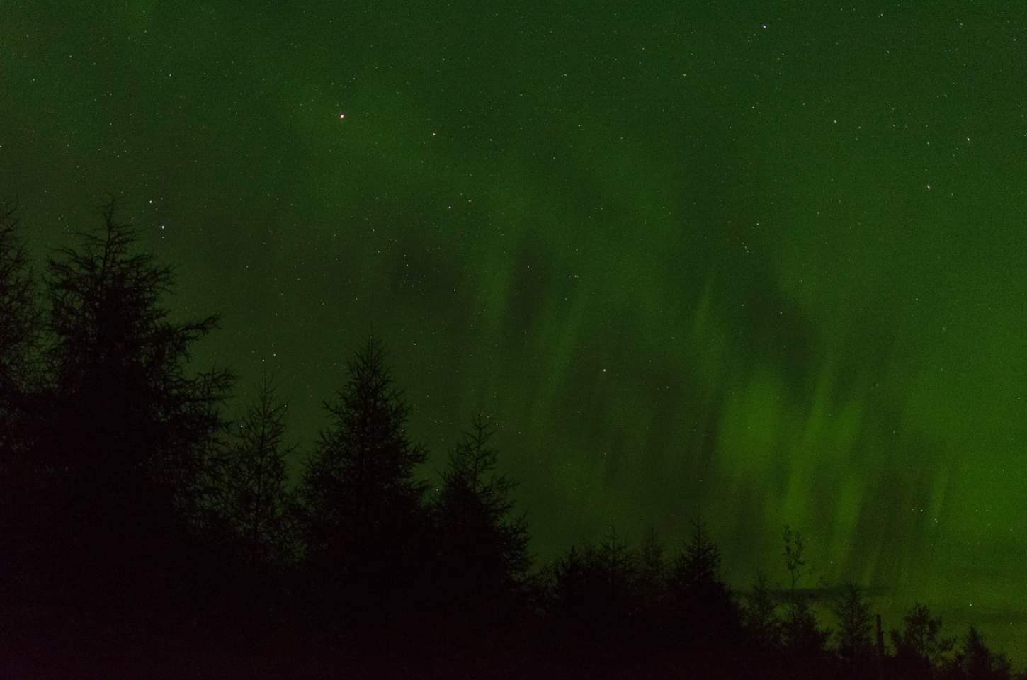 It was early evening by the time I arrived at my hotel. With a minor language barrier, I checked in and moved my things from the car to my very comfortable room. I knew that this was going to be a pleasant stay. Sunlight passed away soon after, as it does this time of year, and darkness wrapped the north quickly as I phoned home to relate my day's experiences. While talking, I happened to pull back the curtain and looked outside. The dark sky above me seemed to shimmer and dance. I grabbed my camera and tripod and headed quickly for the door.