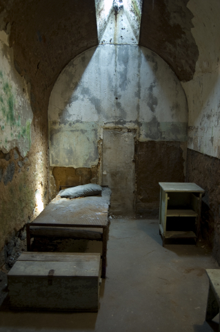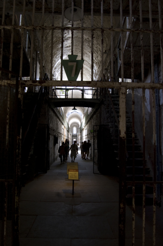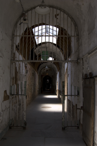 In October of 1829, Eastern State received its first prisoner, Charles Williams, described as “light black skin, five feet, seven inches tall, scar on nose, scar on thigh, broad mouth, black eyes, farmer by trade, can read.” Mr. Williams was convicted of burglary that included one $20 watch, one $3 gold seal, and one gold key. He was sentenced to two years confinement with labour.
